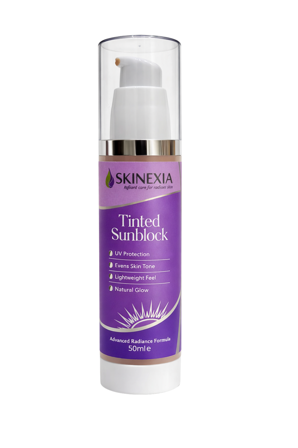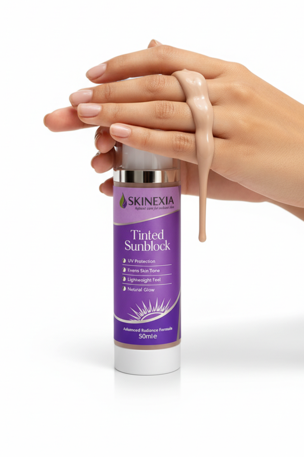 Skinexia Tinted Sunblock is a dual action daily essential that provides reliable UV protection while giving your skin a smooth, even toned finish. The lightweight, non greasy formula blends effortlessly into the skin, helping to minimize dullness and enhance your natural glow.